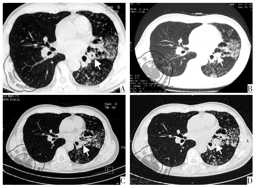 黄东东,蒋 涛,肖 建,等. 变态反应性支气管肺曲霉菌病继发肺诺卡菌感染一例并文献复习[J]. 国际呼吸杂志,2019, 39(15): 1182-1185.